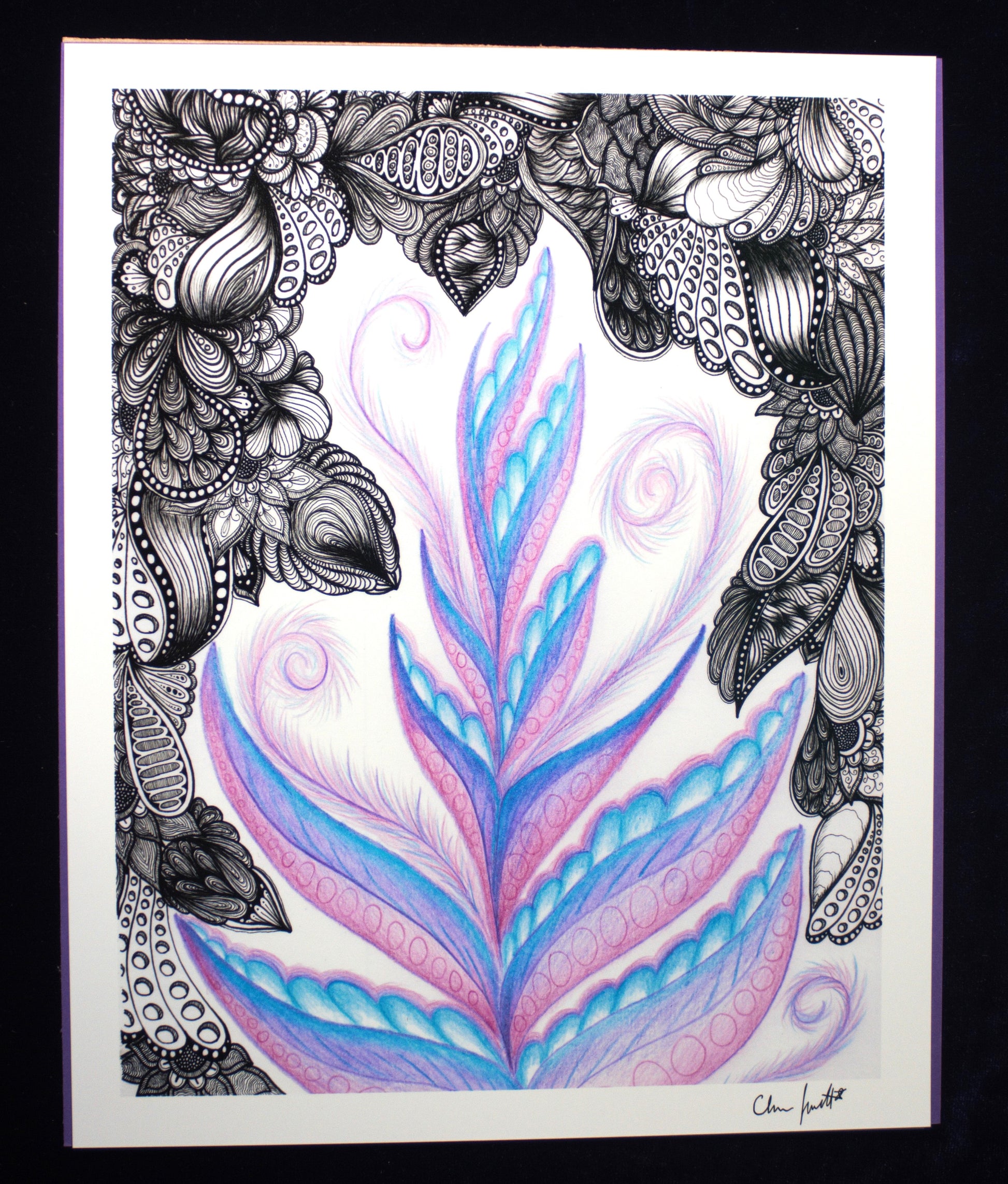 High Quality 8x10" print of original drawing, Purple Fern. Signed and unframed.