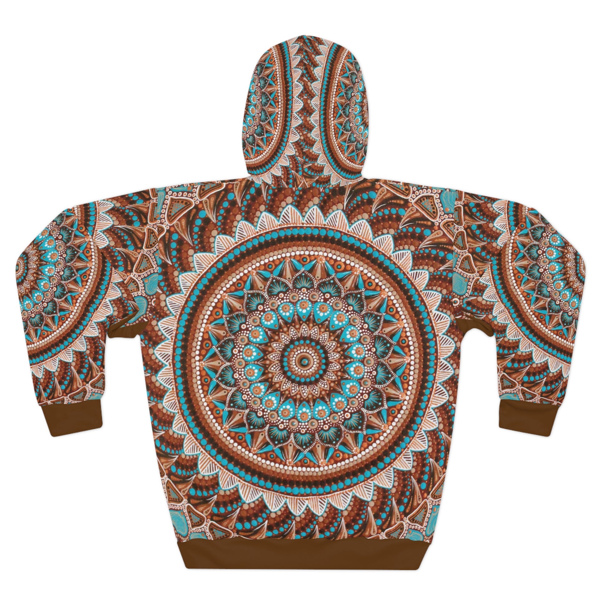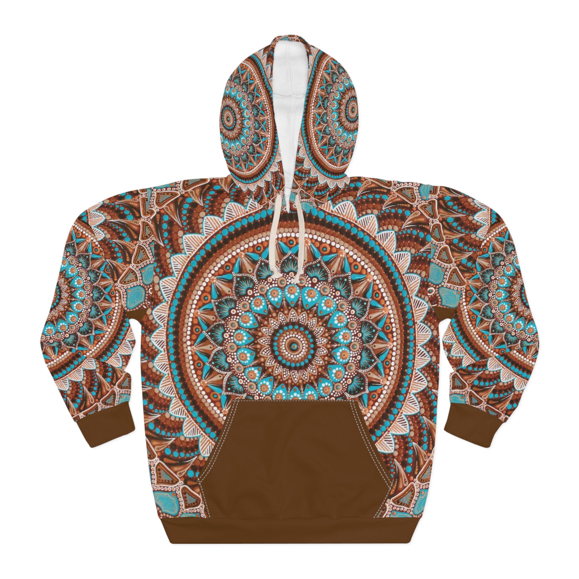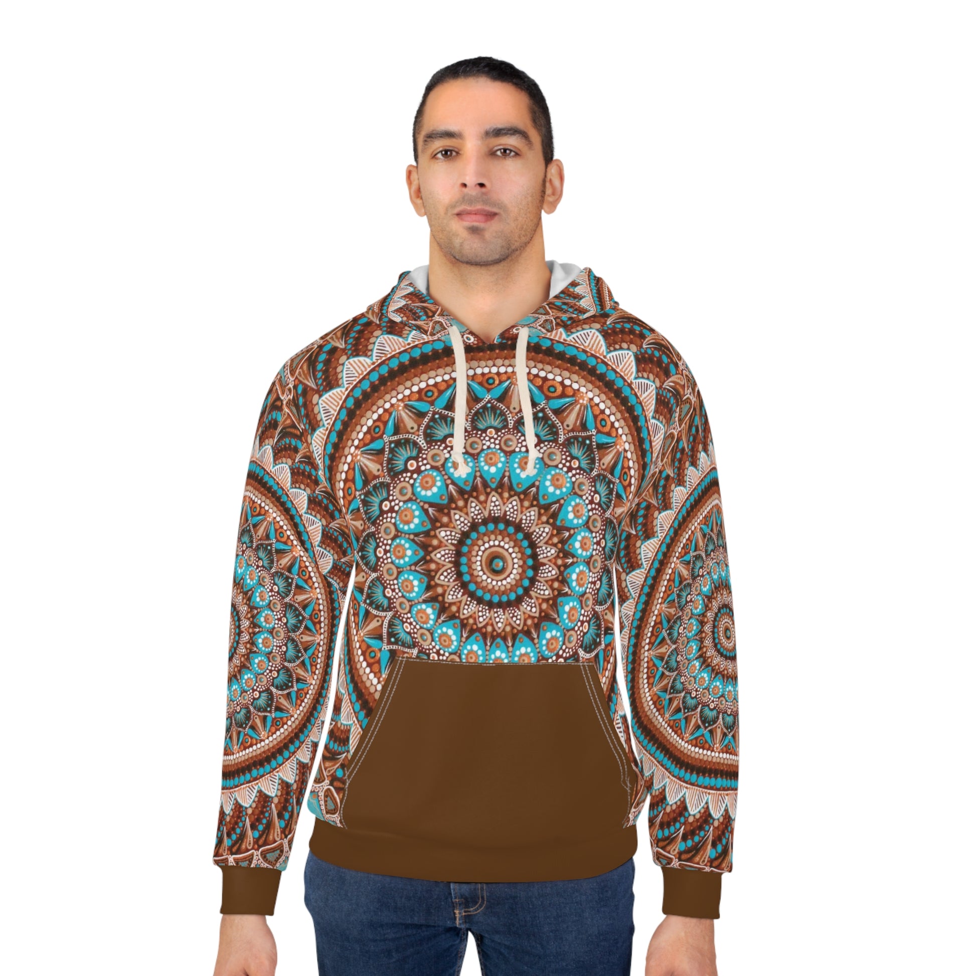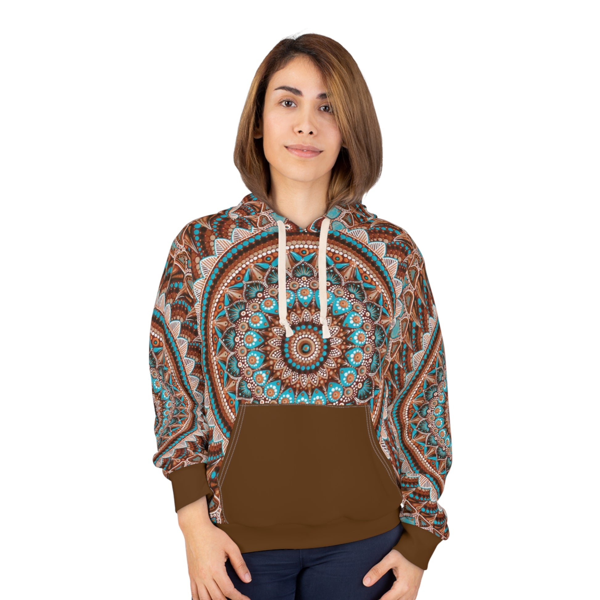 Teal and Brown Dot Mandala AOP Unisex Pullover Hoodie
