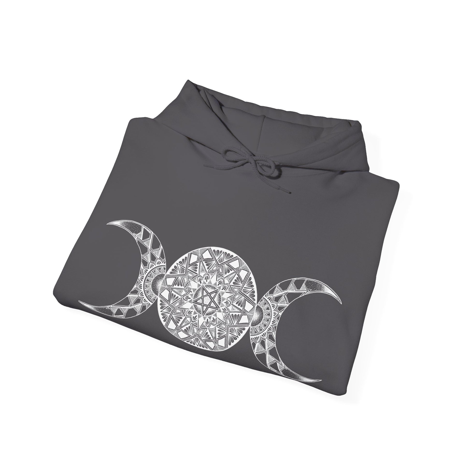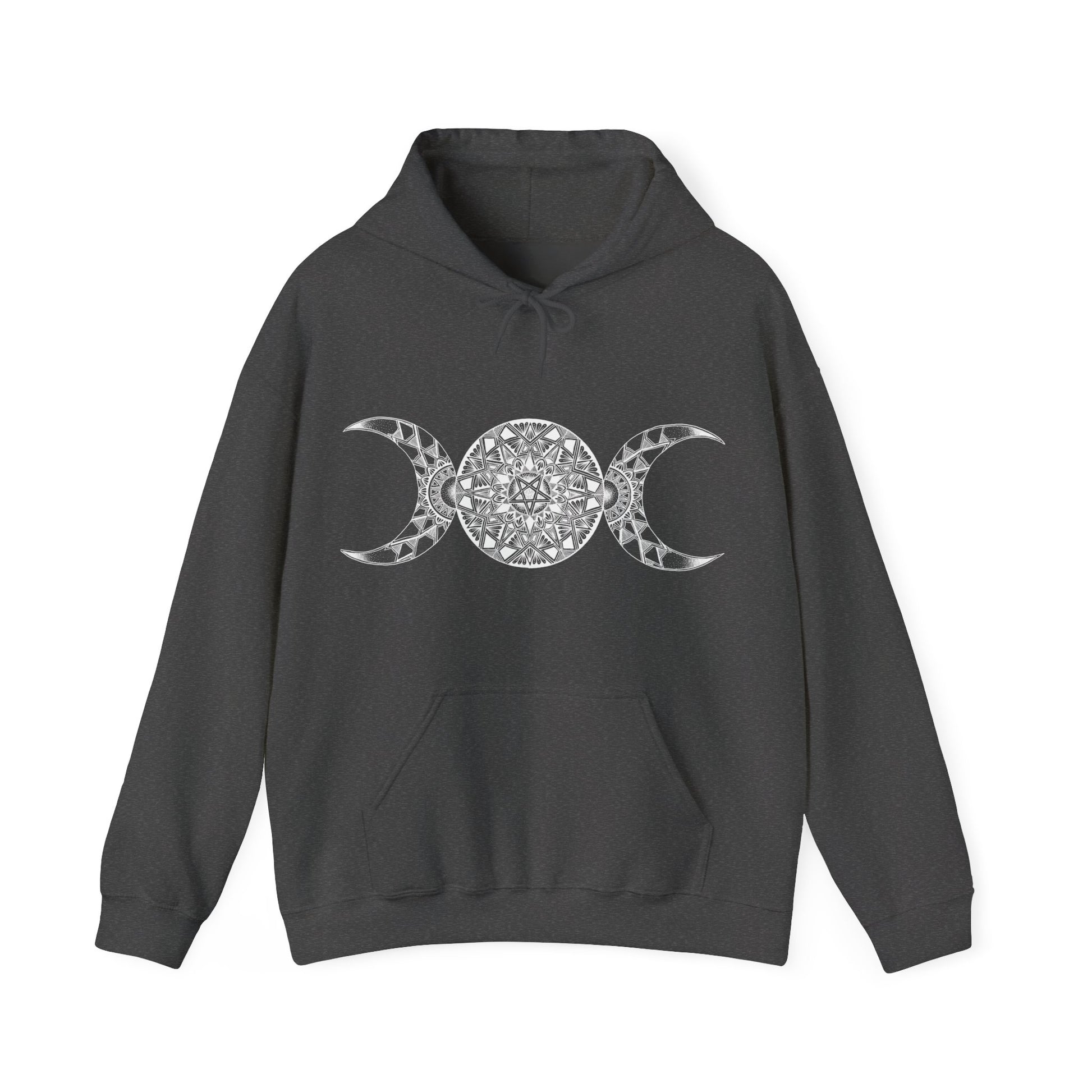 The front of this cozy sweatshirt has my original hand drawn beautiful Triple Moon Goddess mandala with a pentacle in the center. It was meticulously created with love!