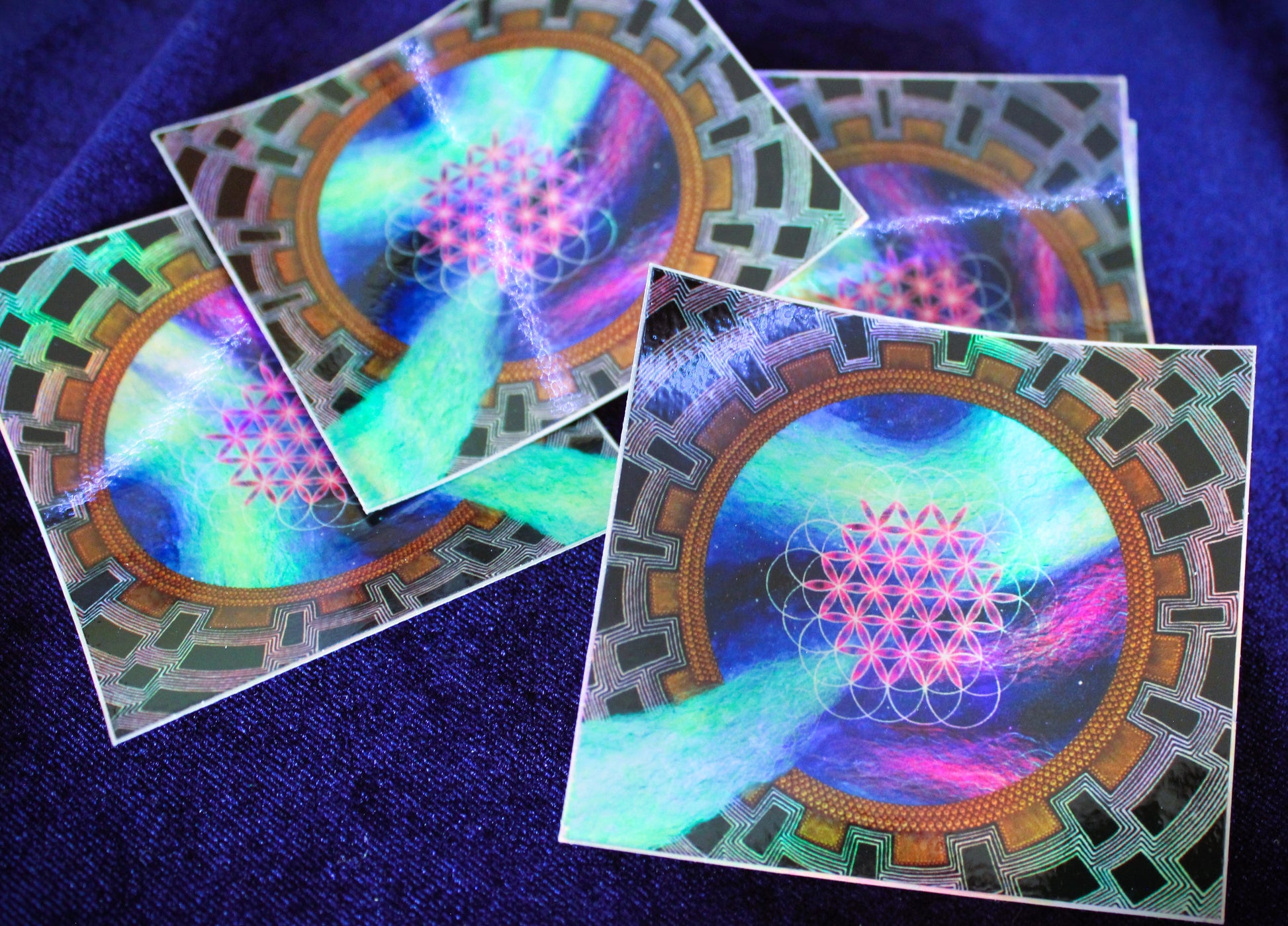 3 inch waterproof vinyl holographic sticker of original painting, Vortex.